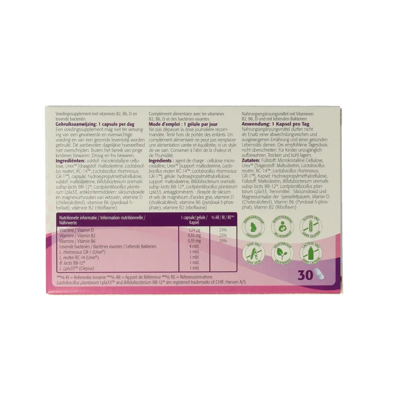 | L. rhamnosus GR-1 (Urex®) | 1 miljard | |
