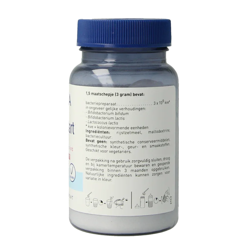 | Bacteriepreparaat In ongeveer gelijke verhoudingen: - Bifidobacterium bifidum - Bifidobacterium lactis - Lactococcus lactis |