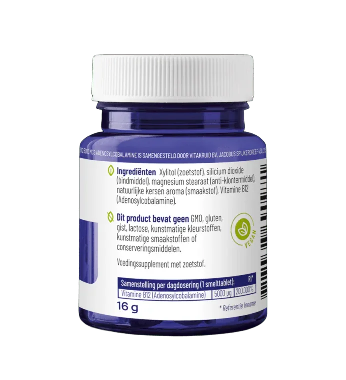 | Vitamine B12 (Adenosylcobalamine) | 5000 µg | 200.000% |