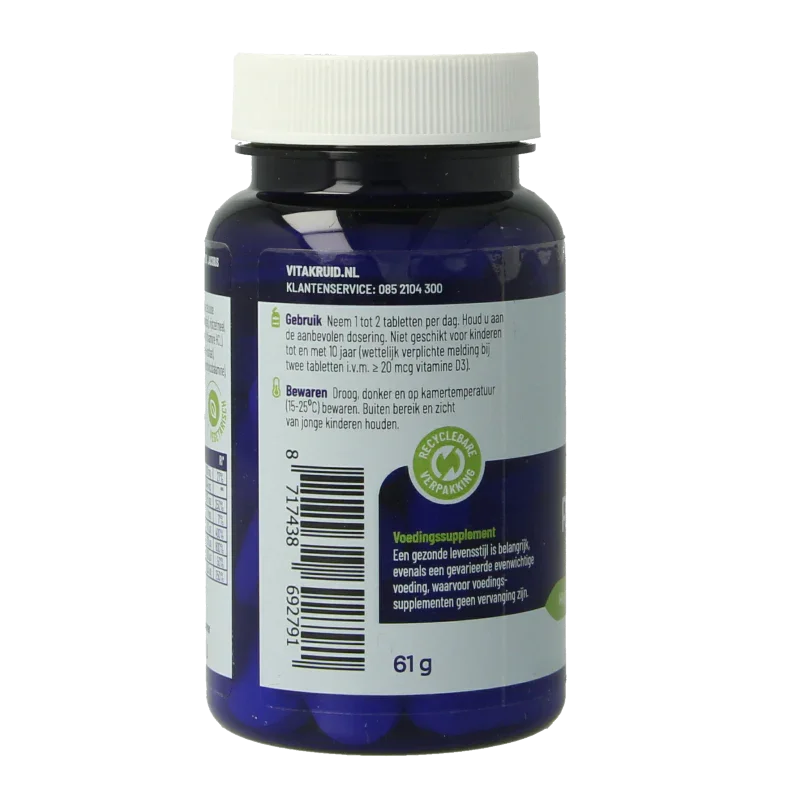 | Vitamine D3 (cholecalciferol) | 12,5 mcg | 250% |