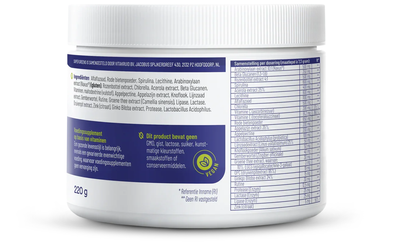 | Samenstelling per dagdosering van 1 maatschep (7,3 gram): | RI* | |