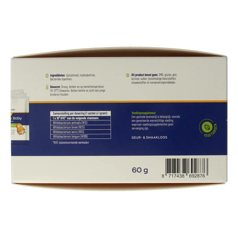 | Probiotica | 1 x 10^9 KVE* van de volgende stammen: |