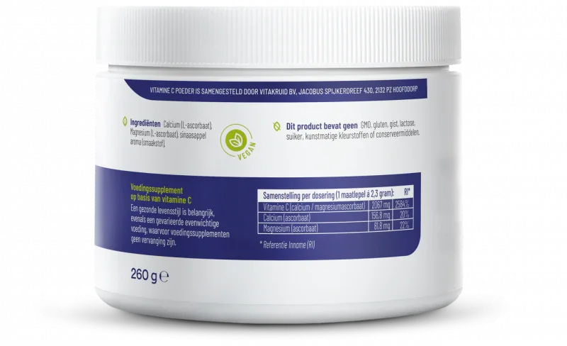 | Calcium (ascorbaat) | 156,8 mg | 20% |