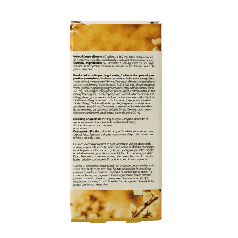| Traraxacum officinals (paardebloem wortel extract) | 126 mg |
