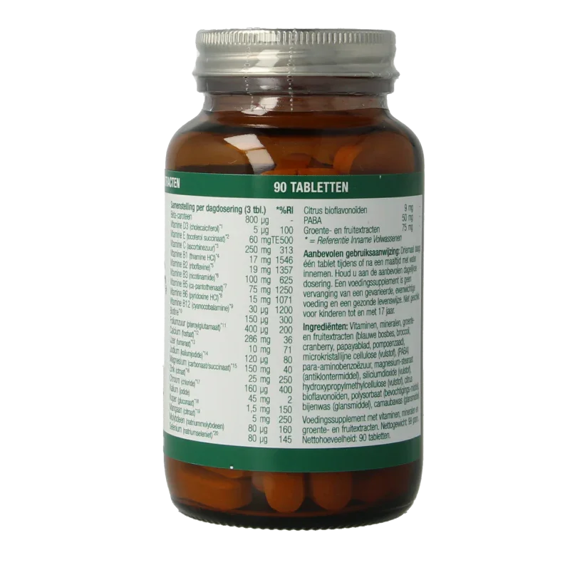 | Samenstelling per dagdosering van 3 tabletten: | % RI* | |