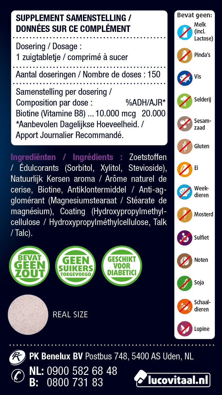 | Biotine (Vitamine B8) | 10.000 mcg | 20.000% |